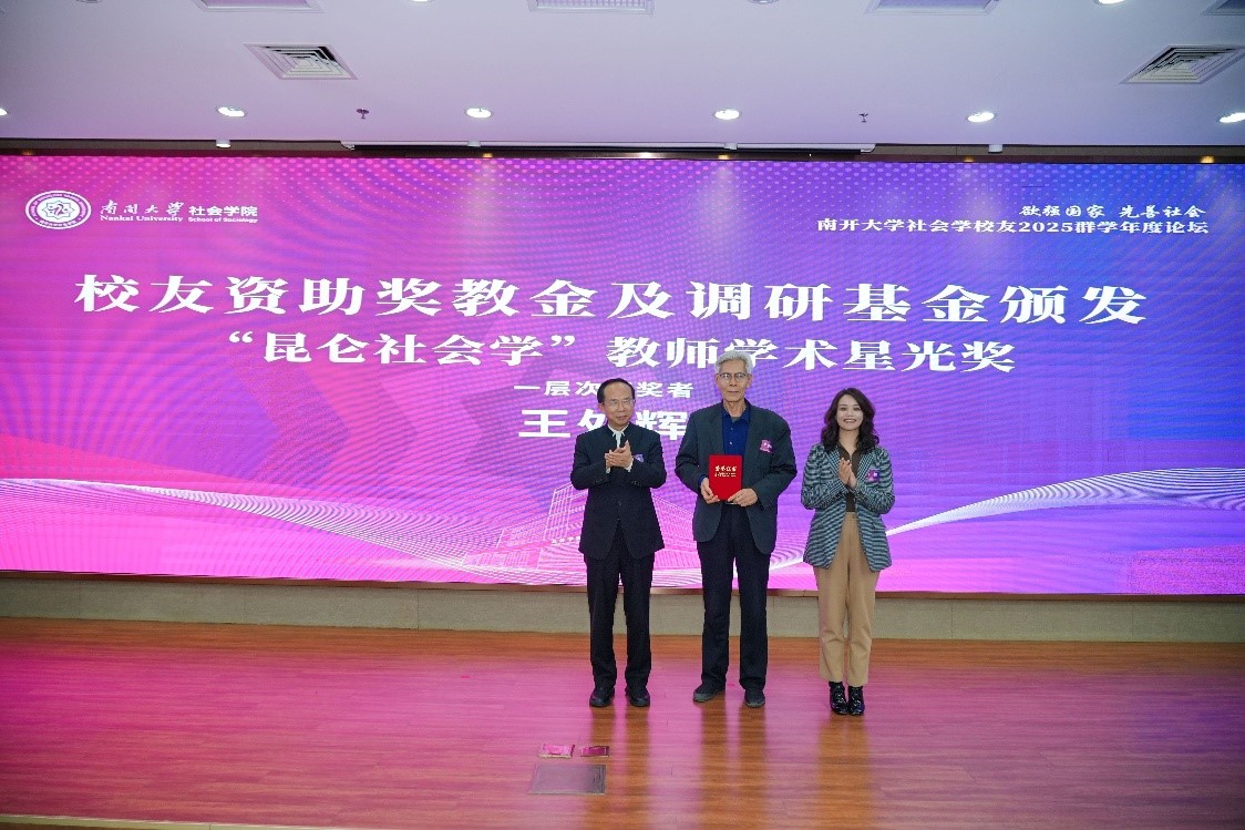 王处辉老师荣获“昆仑社会学”教师学术星光奖(一层次)。冯琳、吕小康、王崇颖、王志友、周详、陈浩、王炳钰、郑广怀等八位老师荣获“昆仑社会学”教师学术星光奖