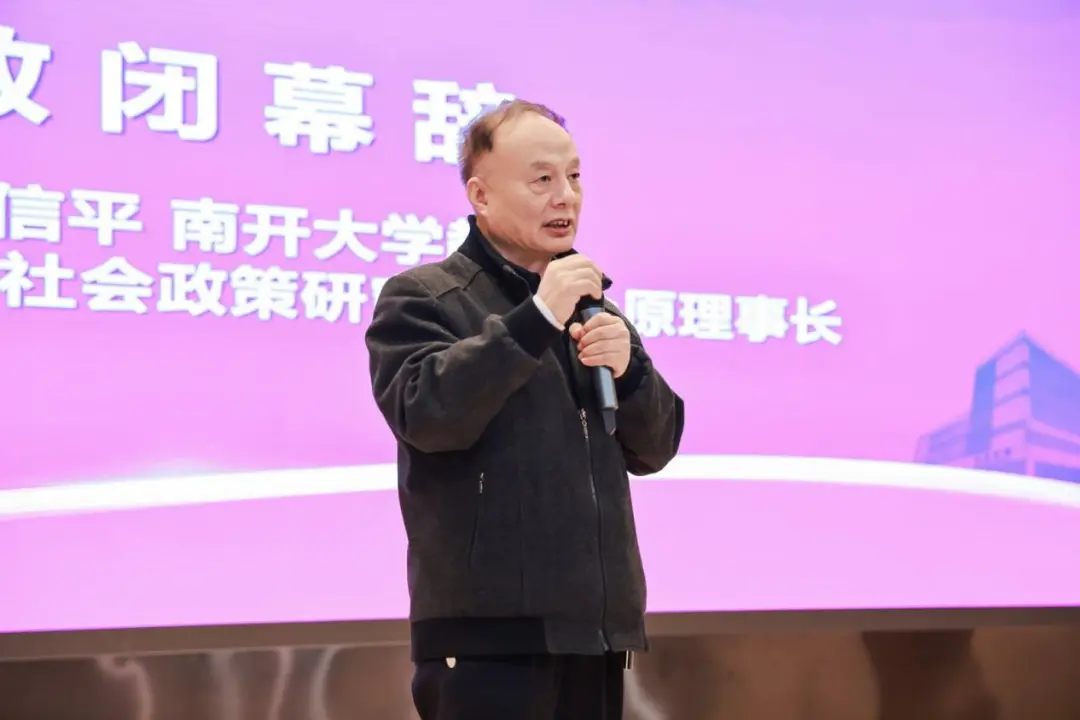 社会建设与管理研究院院长关信平致闭幕辞。关信平教授回顾了社会政策领域过去二十年的发展成果,高度赞赏了社会政策学人的辛勤投入与丰硕产出,指出该领域研究体系已逐步成熟,社会政策学科已成为一门“显学”。但新时期的社会政策研究仍面临新挑战,仍需持续关注并积极回应。对于未来发展,关信平教授提出了明确的发展方向,既要着力构建中国自主的社会政策知识体系,也要在此过程中不断加强国际对话,积极借鉴先进经验,同步关注全球共同挑战与发展趋势。