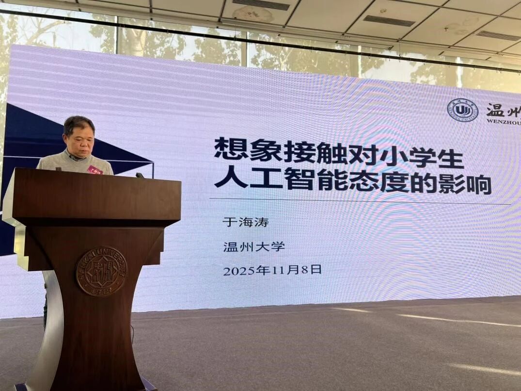 心理学系教授于海涛作“想象接触对小学生人工智能态度的影响”的报告。