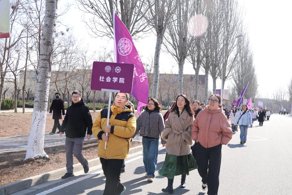 女教职工们与全校千余名女教职工一同,沿着校园标志性点位结伴而行。一路上,大家步伐轻快、欢声笑语,在欣赏校园春日美景的同时,尽情享受运动带来的愉悦,充分展现出昂扬向上、积极进取的精神风貌。