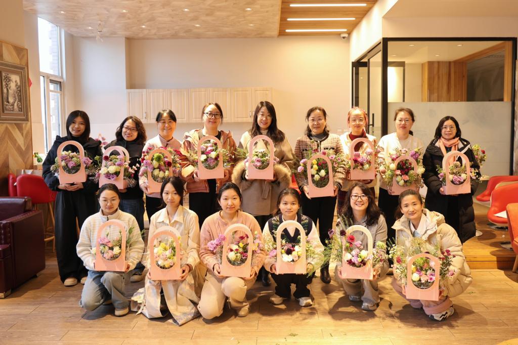 特别邀请了专业花艺师进行现场指导,从花卉的选择、色彩的搭配到造型的设计,花艺师都进行了细致讲解与示范。女教职工们充分发挥自己的创意与想象力,将不同种类的鲜花巧妙组合。每一件作品都凝聚着女教职工们的辛勤劳动与智慧创造,充分展现出她们对生活的热爱与对美的追求。