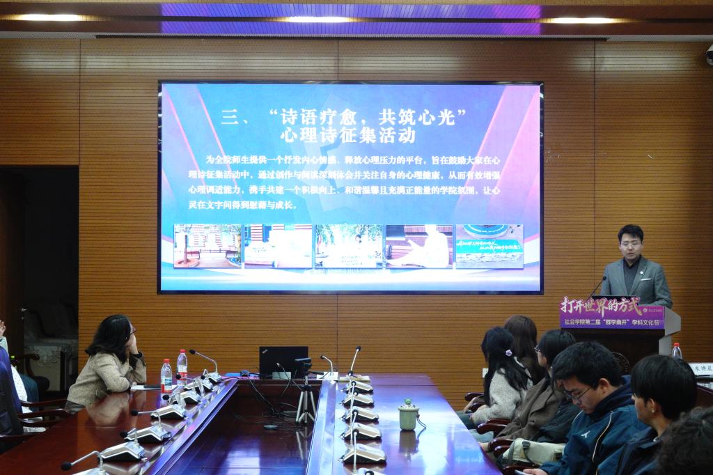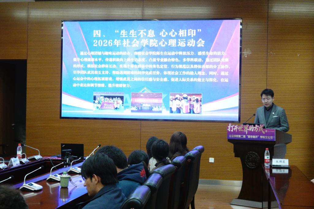 育人理念与学科特色:“群学杯”社会学类知识竞赛对标高规格赛事要求,持续助力学生夯实专业基础、激发学术热忱;“公能砺行”社会工作案例实务大赛以实践创新为导向,以期在真实案例研讨与分析中强化学生专业认同与实务能力;“诗语疗愈,共筑心光”心理诗画征集活动搭建情感抒发平台,助力师生关注心理健康、不断提升心理自护;“生生不息,心心相印”心理运动会融合团辅与趣味运动,提升学生团队协作力与心理韧性;“情绪路书”荧光夜跑活动以运动为载体,启发学生思考个体情绪与社会联结;“实践看世界”暑期社会实践先导活动延续“师生同行”传统,鼓励学生深入基层,在专业指引下“知中国,服务中国”;“耕愈计划”升级2.0,在劳动教育实践活动中锤炼学生品格,强韧心理素质,释放精神压力,并体悟“劳育强心”的深意。此外,本次学科文化节还配套开设系列学术讲座,邀请院内名师与学界大咖进行分享,为学子成长赋能。