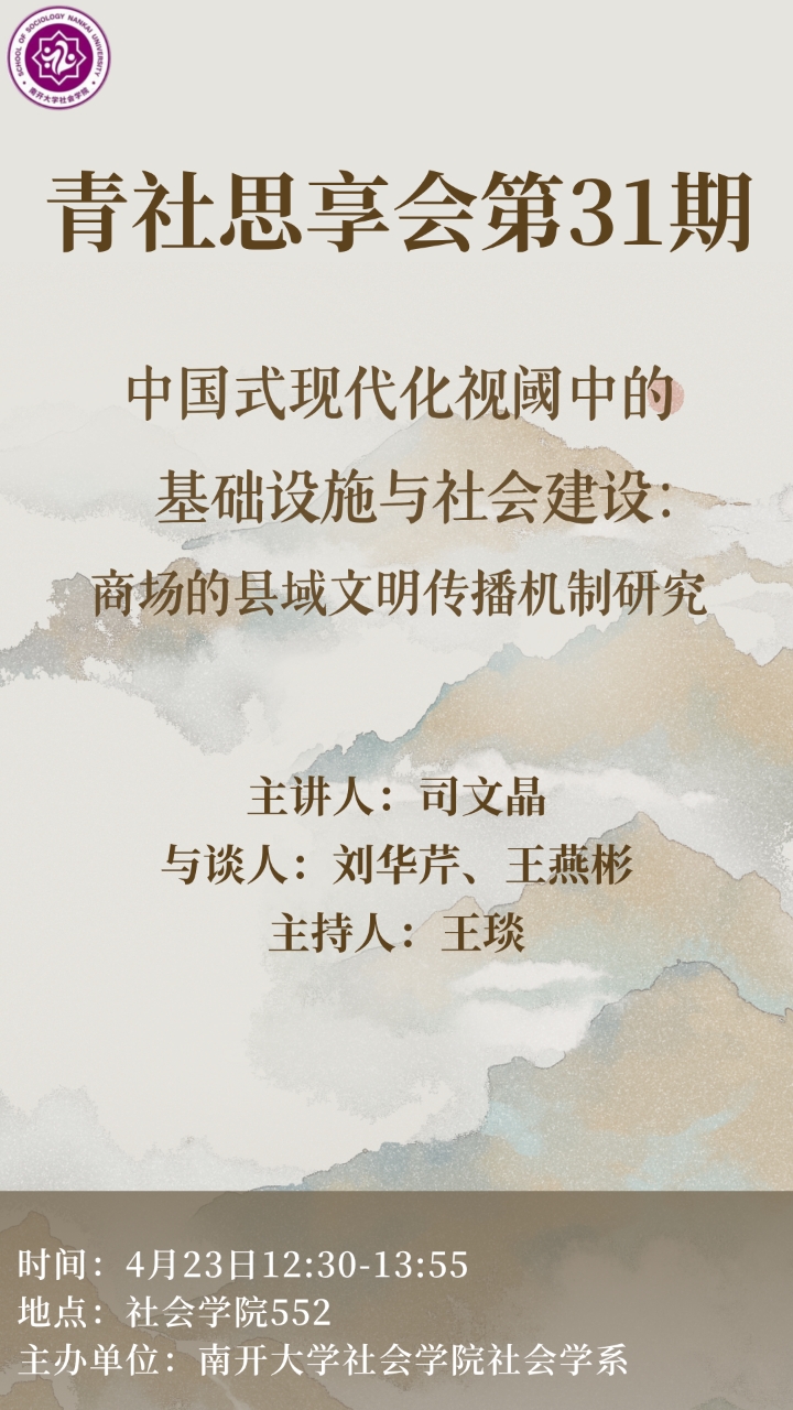 青社思享会 |中国式现代化视阀中的基础设施与社会建设:商场的县域文明传播机制研究